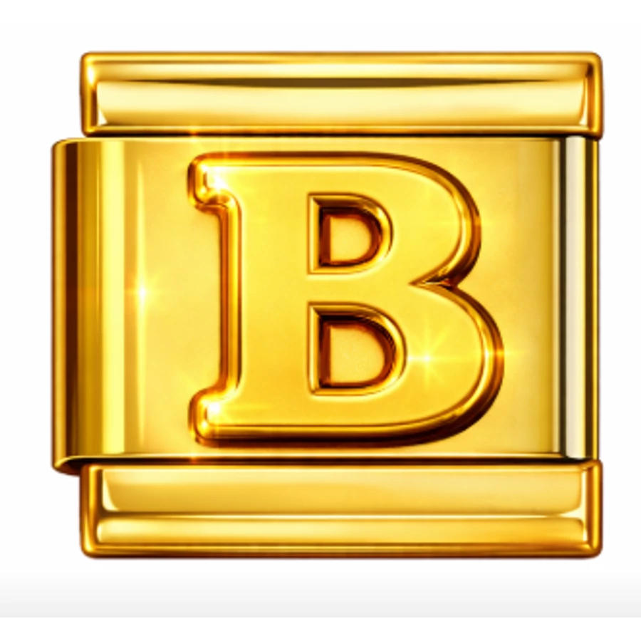 B betűs prémium minőségű stainless steel (rozsdamentes acél) italian charm arany színű kivitelben. Tökéletes választás névre, monogramra vagy személyes üzenetre. Kombinálható más betűkkel és charmokkal. Bruttó ár: 1899 Ft. Astoria Gold – magyar ékszerüzlet.