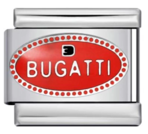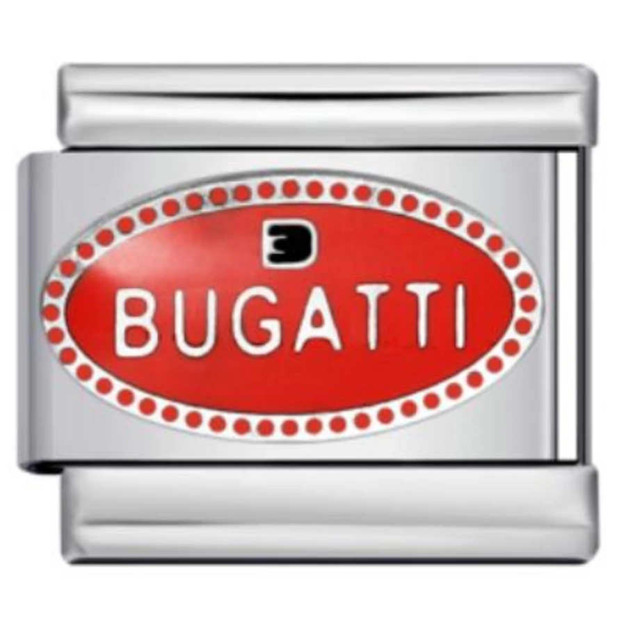 Bugatti logós italian charm stainless steel alapanyagból. Klasszikus, feltűnő piros részlettel – tökéletes autós kollekciókhoz. Kompatibilis italian charm bracelethez, remek ajándék ötlet is.