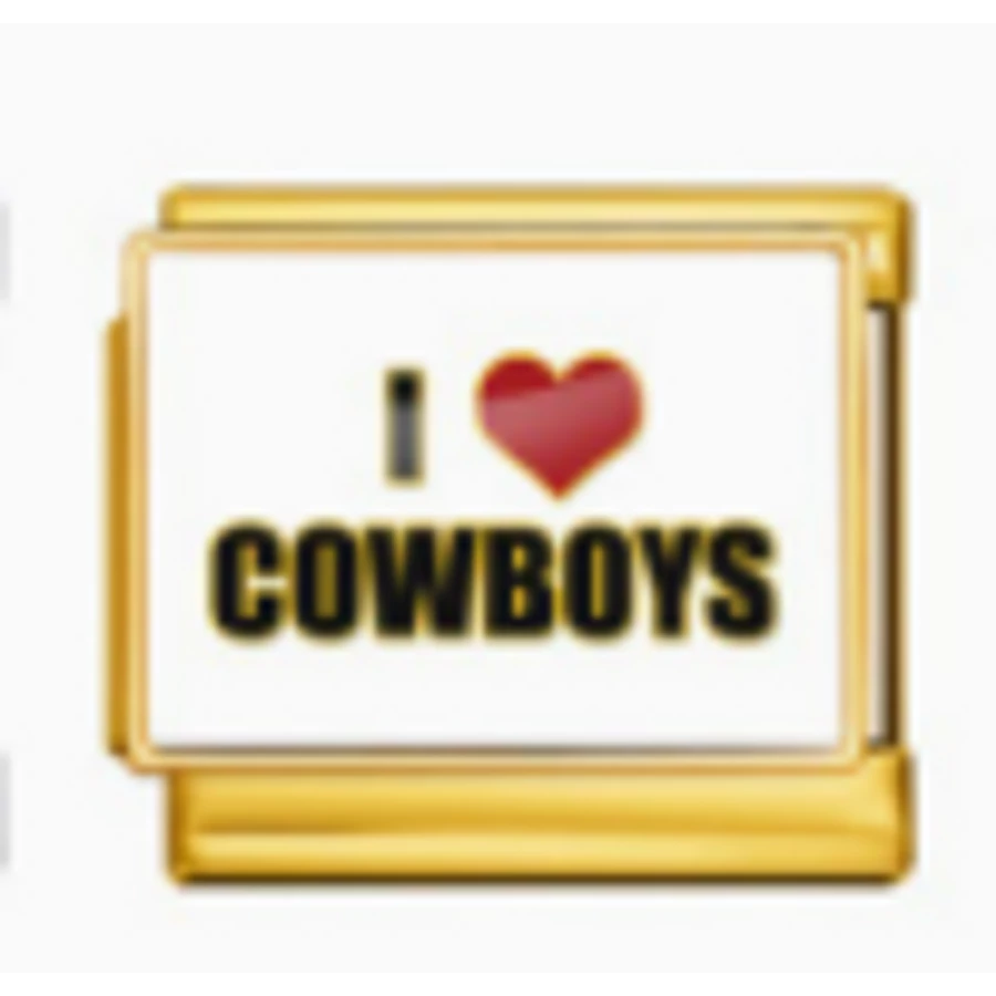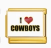 I ❤️ Cowboys Italian Charm – Arany prémium minőségű stainless steel (rozsdamentes acél) italian charm. Vagány feliratos darab („I ❤️ COWBOYS”) arany színű alappal. Tökéletes választás italian charm karkötőhöz, könnyen kombinálható más charmokkal. Bruttó ár: 1899 Ft. Astoria Gold – magyar ékszerüzlet.