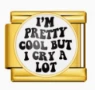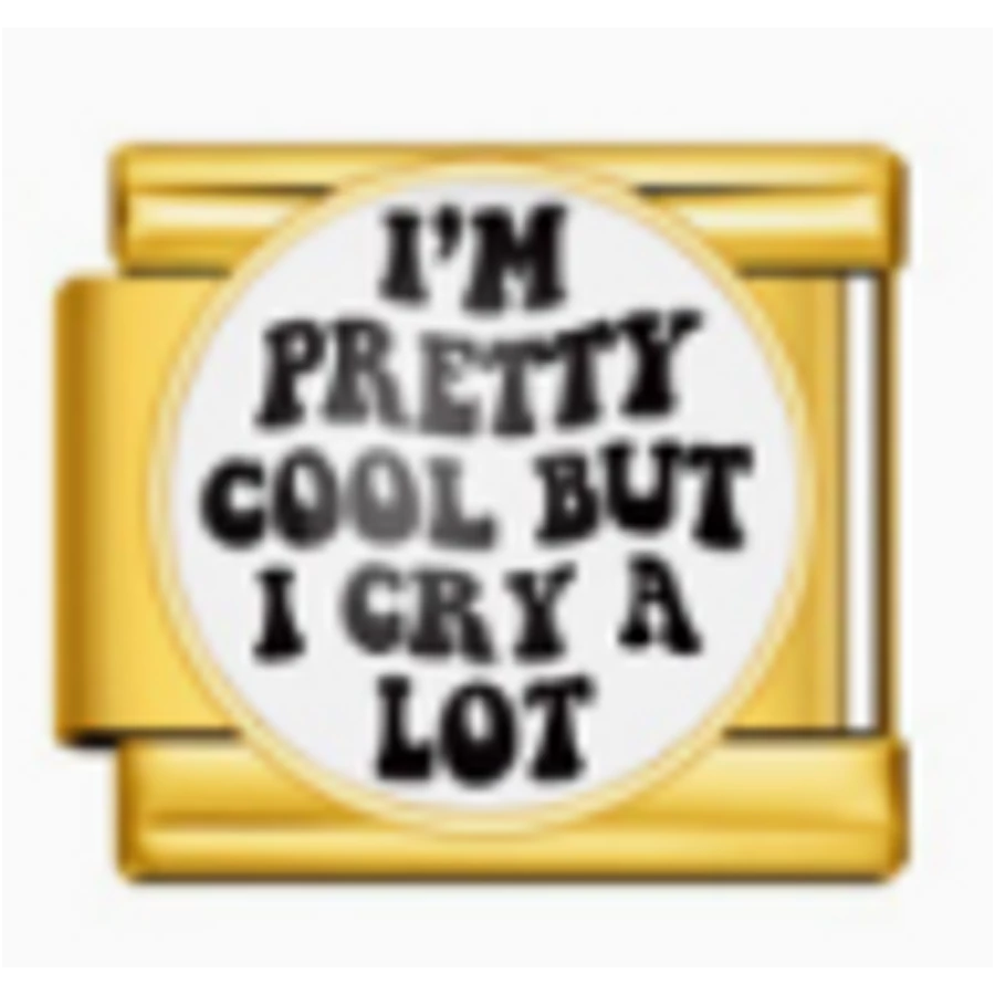 I’m pretty cool but I cry a lot Italian Charm prémium minőségű stainless steel (rozsdamentes acél) italian charm. Statement feliratos darab („I’M PRETTY COOL BUT I CRY A LOT”) — trendi, vicces vibe. Tökéletes választás italian charm karkötőhöz, könnyen kombinálható más charmokkal. Bruttó ár: 1899 Ft. Astoria Gold – magyar ékszerüzlet.