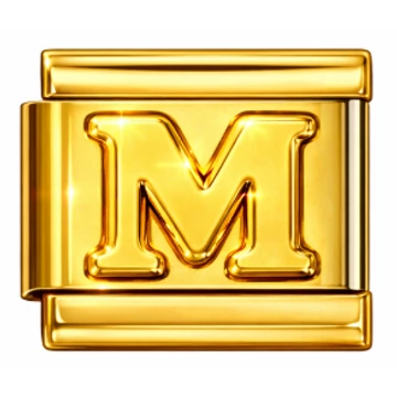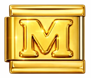 M betűs prémium minőségű stainless steel (rozsdamentes acél) italian charm arany színű kivitelben. Tökéletes választás névre, monogramra vagy személyes üzenetre. Kombinálható más betűkkel és charmokkal. Bruttó ár: 1899 Ft. Astoria Gold – magyar ékszerüzlet.