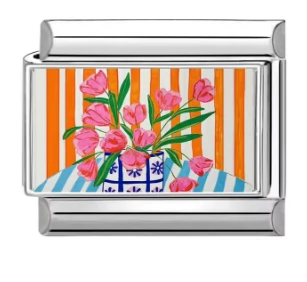 Pink Tulipánok Csíkos Háttérrel – Vibráló Design, Italian Charm Bracelet