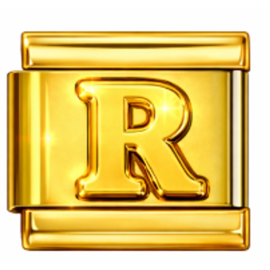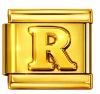 R betűs prémium minőségű stainless steel (rozsdamentes acél) italian charm arany színű kivitelben. Tökéletes választás névre, monogramra vagy személyes üzenetre. Kombinálható más betűkkel és charmokkal. Bruttó ár: 1899 Ft. Astoria Gold – magyar ékszerüzlet.