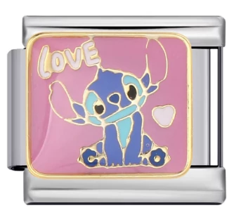 Stitch „LOVE” olasz charm – rózsaszín háttér