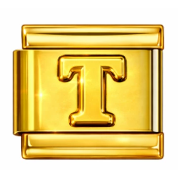 T betűs prémium minőségű stainless steel (rozsdamentes acél) italian charm arany színű kivitelben. Tökéletes választás névre, monogramra vagy személyes üzenetre. Kombinálható más betűkkel és charmokkal. Bruttó ár: 1899 Ft. Astoria Gold – magyar ékszerüzlet.